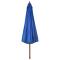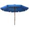 Parasol d'extérieur avec mât en bois 330 cm Bleu azuréCe parasol pratique est parfait pour créer de l'ombre, ce qui le fait indispensable lorsque vous profitez de votre temps dehors. Fabriquée en polyester anti-décoloration, la couverture de parasol est facile à nettoyer. Avec un diamètre de mât de 48 mm, il pourrait être monté sur le support existant ou au milieu de tables percées. Le mât en bois fort, avec les nervures, rend le parasol très stable et durable. Le parasol peut être facilement ouvert et fermé grâce au système à double poulie. L'article est facile à assembler. Veuillez noter que nous vous recommandons de traiter le tissu du parasol avec un spray imperméabilisant s'il est soumis à des fortes précipitations. Ce produit ne convient pas aux intempéries telles que le vent fort, les chutes de neige et les conditions météorologiques extrêmes.