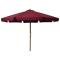 Parasol d'extérieur avec mât en bois 330 cm BordeauxCe parasol pratique est parfait pour créer de l'ombre, ce qui le fait indispensable lorsque vous profitez de votre temps dehors. Fabriquée en polyester anti-décoloration, la couverture de parasol est facile à nettoyer. Avec un diamètre de mât de 48 mm, il pourrait être monté sur le support existant ou au milieu de tables percées. Le mât en bois fort, avec les nervures, rend le parasol très stable et durable. Le parasol peut être facilement ouvert et fermé grâce au système à double poulie. L'article est facile à assembler. Veuillez noter que nous vous recommandons de traiter le tissu du parasol avec un spray imperméabilisant s'il est soumis à des fortes précipitations. Le produit n'est pas adapté aux conditions météorologiques telles que le vent fort, les chutes de neige et les conditions météorologiques extrêmes.
