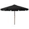Parasol d'extérieur avec mât en bois 330 cm NoirCe parasol pratique est parfait pour créer de l'ombre, ce qui le fait indispensable lorsque vous profitez de votre temps dehors. Fabriquée en polyester anti-décoloration, la couverture de parasol est facile à nettoyer. Avec un diamètre de mât de 48 mm, il pourrait être monté sur le support existant ou au milieu de tables percées. Le mât en bois fort, avec les nervures, rend le parasol très stable et durable. Le parasol peut être facilement ouvert et fermé grâce au système à double poulie. L'article est facile à assembler. Veuillez noter que nous vous recommandons de traiter le tissu du parasol avec un spray imperméabilisant s'il est soumis à des fortes précipitations. Ce produit ne convient pas aux intempéries telles que le vent fort, les chutes de neige et les conditions météorologiques extrêmes.