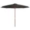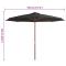 Parasol d'extérieur avec mât en bois 350 cm AnthraciteCe parasol pratique est parfait pour créer de l'ombre et vous protéger des rayons UV nocifs. Fabriquée en polyester anti-UV et anti-décoloration, la toile de parasol vous offre une protection optimale contre le soleil et est facile à nettoyer. Avec un diamètre de mât de 48 mm, il peut être installé dans le support existant ou au milieu de tables à trou. Le mât en bois robuste ainsi que les nervures rendent le parasol très stable et durable. Le parasol de jardin peut être facilement ouvert et fermé grâce au système à double poulie. L'article est facile à assembler. Veuillez noter que nous vous recommandons de traiter le tissu du parasol avec un spray imperméabilisant s'il est soumis à des fortes précipitations. Ce produit ne convient pas aux intempéries telles que le vent fort, les chutes de neige et les conditions météorologiques extrêmes.