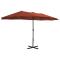 Parasol d'extérieur avec poteau en aluminium terre cuiteCe parasol à double toit est parfait pour créer de l'ombre et vous protéger des rayons UV nocifs du soleil. Fabriquée en polyester anti-UV et anti-décoloration, la housse de parasol vous offre une protection optimale contre le soleil et est facile à nettoyer. Il comporte une base croisée robuste pour ajouter de la stabilité. Le design exclusif de ce parasol offre un très grand espace pour bloquer le soleil. Le poteau en aluminium, ainsi que les 12 nervures durables, rendent le parasol très stable et durable. Le parasol de jardin peut être ouvert et fermé facilement grâce au mécanisme à manivelle. L'article est facile à assembler. Veuillez noter que nous vous recommandons de traiter le tissu du parasol avec un spray imperméabilisant s'il est soumis à des fortes précipitations. Ce produit ne convient pas aux intempéries telles que le vent fort, les chutes de neige et les conditions météorologiques extrêmes.