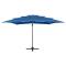 Parasol de jardin à 4 niveaux avec mât en aluminium bleu azuréCe parasol de jardin à 4 niveaux de jardin est un choix parfait pour vous protéger contre les rayons UV et la pluie. Vous pouvez l'installer sur votre patio, terrasse ou dans votre jardin. Fabriqué en polyester anti-UV et anti-décoloration, le parasol d'extérieur peut vous offrir une protection optimale contre le soleil. Le mât et les baleines en aluminium enduit de poudre assurent également la stabilité. Grâce à la manivelle et à l'inclinaison, le parasol est pliable et portable. Il peut être monté sur votre support existant ou au milieu des tables si des trous sont disponibles.
