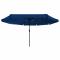 Parasol de jardin Azur 395 x 395 x 245 cm PolyesterCe parasol de jardin moderne transforme vos extérieurs en un coin de confort et de style, idéal pour protéger vos moments en famille ou vos moments solo du soleil. Avec son design moderne et épuré, il est parfait pour les jardins et terrasses, offrant ombre et sophistication. Imaginez-vous sous sa large ombre, savourant une lumière douce grâce à des bandes LED intégrées qui rendent votre jardin magique le soir. Matériaux de qualité : Ce parasol est fait d'un auvent en tissu polyester qui résiste aux UV, protégeant contre le soleil et gardant des couleurs vives. Avec son cadre en acier enduit de poudre, il supporte bien les aléas du temps et reste beau pendant des années. Éclairage LED : Les bandes LED intégrées offrent une belle ambiance, parfaites pour passer des soirées en extérieur. Que vous receviez du monde ou profitiez d'un moment tranquille, cet éclairage apporte une douce lumière sans écraser l'espace. Faciles à installer et économes en énergie, ces lumières ajoutent une touche d'élégance. Réglabilité : Son design pliable et son mécanisme à manivelle rendent l'ajustement de l'auvent hyper simple. La poignée ergonomique permet d'ouvrir, fermer ou incliner le parasol sans effort, optimisant la facilité d'utilisation et l'espace de rangement. Utilisation polyvalente : Ce parasol est parfait partout, que ce soit dans votre jardin, sur votre patio ou terrasse. Que vous organisiez un barbecue ou lisiez tranquillement, il offre une protection contre le soleil tout en gardant une ambiance chaleureuse. Recommandations d'entretien : Pour le garder en bon état, traitez l'auvent avec un spray imperméabilisant de temps en temps. Ça améliore sa résistance à l'eau et préserve son look. L'entretien est simple, sans trop de tracas ni trop de temps à y consacrer.