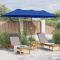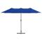 Parasol de jardin Bleu 380 x 196 x 235 cmCe parasol de jardin allie aisément fonctionnalité et élégance, en faisant un ajout incontournable à tout espace de vie en extérieur. Conçu pour l'esthétique moderne, ce parasol garantit simplicité dans le style et l'utilité, offrant une ombre généreuse pour les rassemblements dans le jardin, sur la terrasse ou le balcon. Son tissu en polyester lisse et durable crée une ambiance accueillante, parfait pour les paresseuses après-midis d'été passés à se prélasser dans votre oasis extérieure. Fabriqué avec soin, il fournit une ombre confortable sans compromettre son apparence épurée. Toit en Polyester : Profitez d'une protection UV et d'une résistance à l'eau avec une couverture en polyester de haute qualité. Ce tissu tissé de manière serrée garantit une durabilité à long terme contre un ensoleillement intense et une pluie légère, vous permettant de vous détendre à l'extérieur en toute tranquillité. Son design élégant complète les décors extérieurs modernes, ajoutant sophistication et couverture pratique. Cadre en Acier Enduit de Poudre : Le cadre en acier enduit de poudre, robuste et résistant à la rouille, assure un soutien solide pour le parasol, prolongeant sa durée de vie dans diverses conditions climatiques. Ce traitement renforce le métal contre la corrosion tout en maintenant une apparence élégante, parfaite pour une intégration harmonieuse dans des designs extérieurs contemporains. Ventilation Avancée : Restez au frais à l'ombre grâce à une ventilation efficace qui disperse la chaleur de manière efficace. Cette fonctionnalité minimise l'accumulation de chaleur sous le parasol, garantissant un environnement réconfortant et rafraîchissant pendant une utilisation prolongée. Idéal pour ces journées d'été chaudes où la détente est primordiale. Design Pliable : Économisez de l'espace avec une conception innovante qui permet un pliage rapide et un rangement compact. Cette fonctionnalité garantit que le parasol prend un minimum de place lorsqu'il n'est pas utilisé, facilitant le stockage saisonnier et le transport sans tracas. Mécanisme à Manivelle : Ouvrez et fermez facilement le parasol grâce à l'intuitif système de manivelle. Ce mécanisme est conçu pour un fonctionnement fluide, permettant un déploiement et un ajustement facile de votre parasol, une fonctionnalité pratique qui améliore le confort et l'accessibilité de l'utilisateur en tout temps.