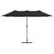 Parasol de jardin Noir 380 x 196 x 235 cmCe parasol de jardin allie aisément fonctionnalité et élégance, en faisant un ajout incontournable à tout espace de vie en extérieur. Conçu pour l'esthétique moderne, ce parasol garantit simplicité dans le style et l'utilité, offrant une ombre généreuse pour les rassemblements dans le jardin, sur la terrasse ou le balcon. Son tissu en polyester lisse et durable crée une ambiance accueillante, parfait pour les paresseuses après-midis d'été passés à se prélasser dans votre oasis extérieure. Fabriqué avec soin, il fournit une ombre confortable sans compromettre son apparence épurée. Toit en Polyester : Profitez d'une protection UV et d'une résistance à l'eau avec une couverture en polyester de haute qualité. Ce tissu tissé de manière serrée garantit une durabilité à long terme contre un ensoleillement intense et une pluie légère, vous permettant de vous détendre à l'extérieur en toute tranquillité. Son design élégant complète les décors extérieurs modernes, ajoutant sophistication et couverture pratique. Cadre en Acier Enduit de Poudre : Le cadre en acier enduit de poudre, robuste et résistant à la rouille, assure un soutien solide pour le parasol, prolongeant sa durée de vie dans diverses conditions climatiques. Ce traitement renforce le métal contre la corrosion tout en maintenant une apparence élégante, parfaite pour une intégration harmonieuse dans des designs extérieurs contemporains. Ventilation Avancée : Restez au frais à l'ombre grâce à une ventilation efficace qui disperse la chaleur de manière efficace. Cette fonctionnalité minimise l'accumulation de chaleur sous le parasol, garantissant un environnement réconfortant et rafraîchissant pendant une utilisation prolongée. Idéal pour ces journées d'été chaudes où la détente est primordiale. Design Pliable : Économisez de l'espace avec une conception innovante qui permet un pliage rapide et un rangement compact. Cette fonctionnalité garantit que le parasol prend un minimum de place lorsqu'il n'est pas utilisé, facilitant le stockage saisonnier et le transport sans tracas. Mécanisme à Manivelle : Ouvrez et fermez facilement le parasol grâce à l'intuitif système de manivelle. Ce mécanisme est conçu pour un fonctionnement fluide, permettant un déploiement et un ajustement facile de votre parasol, une fonctionnalité pratique qui améliore le confort et l'accessibilité de l'utilisateur en tout temps.