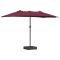 Parasol de jardin Rouge bordeaux 385 x 209 x 244 cm tissuCe parasol de jardin offre un design contemporain et épuré adapté aux espaces extérieurs tels que balcons, jardins ou terrasses. Conçu avec des tendances modernes, il dispose d'un tissu en polyester lisse et opaque qui offre une excellente protection solaire et crée une atmosphère accueillante pour la détente ou les rassemblements sociaux. Design contemporain : Apportant une touche stylée à tout espace extérieur, ce parasol de jardin met en avant les tendances de design contemporain avec ses lignes épurées et son esthétique moderne. Le parasol améliore les espaces extérieurs, le rendant parfait pour les balcons, terrasses et jardins, créant une ambiance accueillante qui encourage la détente et le plaisir. Haute fonctionnalité : Le parasol est équipé d'une manivelle lisse, te permettant de l'ouvrir et de le fermer facilement sans tracas. Cette fonctionnalité pratique assure une gestion pratique du parasol, garantissant une installation rapide et un rangement sécurisé, ce qui le rend idéal pour ceux qui apprécient l'efficacité et la facilité d'utilisation. Solution d'éclairage pratique : L'éclairage LED intégré sous le auvent fournit une douce lumière pour les rassemblements du soir. Avec des options alimentées par énergie solaire ou par piles, ces lumières améliorent le plaisir nocturne, créant une atmosphère chaleureuse pour toutes les occasions, prolongeant ainsi la fonctionnalité au-delà de l'utilisation diurne. Structure robuste : Fabriqué en acier enduit de poudre avec un auvent en polyester de haute qualité, ce parasol offre un soutien robuste et une résistance aux intempéries. Sa structure solide garantit une utilisation fiable avec une base stable qui résiste à diverses conditions météorologiques, reflétant longévité et fiabilité. Entretien : Pour maintenir son état impeccable, il est conseillé d'utiliser une housse lorsqu'il n'est pas utilisé et de le traiter avec un spray imperméabilisant pour une meilleure résistance à l'eau. Suivre ces instructions d'entretien préservera l'intégrité du tissu et prolongera la durée de vie du parasol. Le produit contient de petites pièces qui peuvent présenter un risque pour les jeunes enfants. Gardez les petites pièces hors de portée des enfants. Ce produit n'est pas un jouet ! Veillez à ce que les enfants n'utilisent pas le parasol.