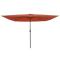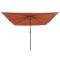 Parasol de jardin Terre cuite 295 x 295 x 245 cmCe parasol de jardin super stylé est idéal pour les repas en plein air et la détente. Avec son design moderne, il donne une touche chic à n'importe quel espace, que ce soit dans un jardin, sur une terrasse ou un patio. Parfait pour ceux qui adorent l'été, il prolonge cette belle ambiance jusqu'à la nuit grâce à ses lumières LED intégrées, parfait pour divertir des amis sous les étoiles. Matériau durable : En polyester, ce parasol tient bien et résiste aux intempéries. Grâce à son tissu qui bloque les UV, il se garde en bon état, saison après saison. Composants polyvalents : Son design pliable permet de le ranger facilement. Les lumières LED à batterie apportent une illumination douce, idéale pour des soirées sympas ou un dîner douillet en extérieur. Caractéristiques fonctionnelles : Des renforts dans les baleines apportent un soutien supplémentaire lors des jours venteux, accroissant sa durabilité. Un mécanisme de verrouillage solide garantit que le parasol reste bien ouvert pendant son utilisation. Ombre généreuse : Que ce soit pour le jardin ou la terrasse, cet ombrellon offre une couverture parfaite, parfait pour dîner ou relaxer dehors. Ses dimensions de 295 x 295 cm assurent une grande ombre. Facilité d'entretien : Le montage nécessite un tournevis et une personne, c'est simple et rapide. Pour garder son look, un coup de chiffon sec sur le tissu suffit, et range-le à l'intérieur pendant l'hiver.