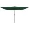 Parasol de jardin Vert 295 x 295 x 245 cm Polyester et AcierCe parasol de jardin super stylé est idéal pour les repas en plein air et la détente. Avec son design moderne, il donne une touche chic à n'importe quel espace, que ce soit dans un jardin, sur une terrasse ou un patio. Parfait pour ceux qui adorent l'été, il prolonge cette belle ambiance jusqu'à la nuit grâce à ses lumières LED intégrées, parfait pour divertir des amis sous les étoiles. Matériau durable : En polyester, ce parasol tient bien et résiste aux intempéries. Grâce à son tissu qui bloque les UV, il se garde en bon état, saison après saison. Composants polyvalents : Son design pliable permet de le ranger facilement. Les lumières LED à batterie apportent une illumination douce, idéale pour des soirées sympas ou un dîner douillet en extérieur. Caractéristiques fonctionnelles : Des renforts dans les baleines apportent un soutien supplémentaire lors des jours venteux, accroissant sa durabilité. Un mécanisme de verrouillage solide garantit que le parasol reste bien ouvert pendant son utilisation. Ombre généreuse : Que ce soit pour le jardin ou la terrasse, cet ombrellon offre une couverture parfaite, parfait pour dîner ou relaxer dehors. Ses dimensions de 295 x 295 cm assurent une grande ombre. Facilité d'entretien : Le montage nécessite un tournevis et une personne, c'est simple et rapide. Pour garder son look, un coup de chiffon sec sur le tissu suffit, et range-le à l'intérieur pendant l'hiver.