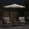 Parasol de jardin avec LED et mât en acier blanc 225x225x212 cmCe parasol de jardin est parfait pour créer de l'ombre et vous protéger des rayons UV nocifs du soleil. Protection contre le soleil et la pluie : fabriqué en polyester durable, ce parasol d'extérieur offre une protection contre le soleil et la pluie, créant ainsi un endroit idéal pour profiter de l'extérieur. Construction robuste : ce parasol de jardin est soutenu par un mât robuste et des nervures au sommet, garantissant que la couverture reste droite même les jours venteux. Mécanisme de manivelle et d'inclinaison : ce parasol d'extérieur est doté d'un système de manivelle qui vous permet de l'ouvrir et de le fermer facilement. La conception inclinable par bouton vous permet d'incliner le parasol pour bloquer le soleil et rester au frais et confortable.Lumières LED brillantes : les lumières LED intégrées du parasol illuminent votre espace de vie extérieur et créent une ambiance chaleureuse et romantique lorsque le soleil se couche. Bon à savoir :Ce produit n'est pas un jouet ! Veillez à ce que les enfants n'utilisent pas le parasol, la toile ou la base pour jouer ou grimper. Ne pas utiliser de feu ouvert (par exemple, barbecue ou grill) sous ou à côté de ce produit. Ce produit n'est pas 100 % imperméable. Nous recommandons de traiter ce produit avec un spray imperméable pour une meilleure résistance à l'eau. Tenir les enfants à l'écart de la zone d'assemblage pendant le montage. Manipulez les pièces lourdes avec précaution. Assurez-vous que ce produit est entièrement assemblé comme illustré avant de l'utiliser. Ce produit ne doit être utilisé que sur un sol ferme et plat. Veillez à ce que le produit soit toujours placé sur un sol plat. Aucune responsabilité ne sera acceptée en cas de dommages ou de blessures causés par une utilisation incorrecte de ce produit. Tenir les mains à l'écart du mécanisme de pliage et des pièces mobiles afin d'éviter tout risque de blessure. N'utilisez ni n'ouvrez jamais ce parasol sans qu'une base appropriée ne soit en place. N'utilisez pas ce parasol pendant les périodes de vent fort et de pluie. Le non-respect de cette consigne peut entraîner des blessures et/ou des dommages. Fermez toujours le parasol et mettez la housse si le vent dépasse une « brise modérée », s'il y a des chutes de neige ou s'il pleut. Le produit contient de petites pièces qui peuvent présenter un risque pour les jeunes enfants. Gardez les petites pièces hors de portée des enfants. Ce produit n'est pas un jouet ! Veillez à ce que les enfants n'utilisent pas le parasol, l'auvent ou la base pour jouer, grimper, jouer ou grimper. N'utilisez pas de feu ouvert (par exemple, barbecue ou grill) sous ou à côté de ce produit.