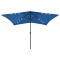 Parasol de jardin avec LED et mât en acier bleu azuré 2x3 mCe parasol de jardin est un choix parfait pour vous protéger contre les rayons UV et la pluie. Vous pouvez l'installer sur votre patio, terrasse ou dans votre jardin. Fabriqué en polyester anti-UV et anti-décoloration, le parasol d'extérieur peut vous offrir une protection optimale contre le soleil. Le mât et les baleines en acier enduit de poudre assurent également la stabilité. Grâce à la manivelle et à l'inclinaison, le parasol est pliable et portable. Il peut être monté sur votre support existant ou au milieu des tables si des trous sont disponibles. Les lumières LED intégrées, alimentées par le panneau solaire, créeront une ambiance chaleureuse et romantique la nuit. Ce produit ne convient pas aux intempéries telles que le vent fort, les chutes de neige et les conditions météorologiques extrêmes.