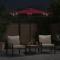 Parasol de jardin avec LED mât en acier bordeaux 225x225x212 cmCe parasol de jardin est parfait pour créer de l'ombre et vous protéger des rayons UV nocifs du soleil. Protection contre le soleil et la pluie : fabriqué en polyester durable, ce parasol d'extérieur offre une protection contre le soleil et la pluie, créant ainsi un endroit idéal pour profiter de l'extérieur. Construction robuste : ce parasol de jardin est soutenu par un mât robuste et des nervures au sommet, garantissant que la couverture reste droite même les jours venteux. Mécanisme de manivelle et d'inclinaison : ce parasol d'extérieur est doté d'un système de manivelle qui vous permet de l'ouvrir et de le fermer facilement. La conception inclinable par bouton vous permet d'incliner le parasol pour bloquer le soleil et rester au frais et confortable. Lumières LED brillantes : les lumières LED intégrées du parasol illuminent votre espace de vie extérieur et créent une ambiance chaleureuse et romantique lorsque le soleil se couche. Bon à savoir : Ce produit n'est pas un jouet ! Veillez à ce que les enfants n'utilisent pas le parasol, la toile ou la base pour jouer ou grimper. Ne pas utiliser de feu ouvert (par exemple, barbecue ou grill) sous ou à côté de ce produit. Ce produit n'est pas 100 % imperméable. Nous recommandons de traiter ce produit avec un spray imperméable pour une meilleure résistance à l'eau. Tenir les enfants à l'écart de la zone d'assemblage pendant le montage. Manipulez les pièces lourdes avec précaution. Assurez-vous que ce produit est entièrement assemblé comme illustré avant de l'utiliser. Ce produit ne doit être utilisé que sur un sol ferme et plat. Veillez à ce que le produit soit toujours placé sur un sol plat. Aucune responsabilité ne sera acceptée en cas de dommages ou de blessures causés par une utilisation incorrecte de ce produit. Tenir les mains à l'écart du mécanisme de pliage et des pièces mobiles afin d'éviter tout risque de blessure. N'utilisez ni n'ouvrez jamais ce parasol sans qu'une base appropriée ne soit en place. N'utilisez pas ce parasol pendant les périodes de vent fort et de pluie. Le non-respect de cette consigne peut entraîner des blessures et/ou des dommages. Fermez toujours le parasol et mettez la housse si le vent dépasse une « brise modérée », s'il y a des chutes de neige ou s'il pleut. Le produit contient de petites pièces qui peuvent présenter un risque pour les jeunes enfants. Gardez les petites pièces hors de portée des enfants. Ce produit n'est pas un jouet ! Veillez à ce que les enfants n'utilisent pas le parasol, l'auvent ou la base pour jouer, grimper, jouer ou grimper. N'utilisez pas de feu ouvert (par exemple, barbecue ou grill) sous ou à côté de ce produit.