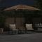 Parasol de jardin avec LED et mât en acier marron 248x248x248cmCe parasol de jardin avec LED est parfait pour créer de l'ombre et vous protéger des rayons UV nocifs du soleil. Protection contre le soleil et la pluie : fabriqué en polyester durable, ce parasol d'extérieur offre une protection contre le soleil et la pluie, créant ainsi un endroit idéal pour profiter de l'extérieur.Construction robuste : ce parasol de jardin est soutenu par un mât robuste et des nervures au sommet, garantissant que la couverture reste droite même les jours venteux.Mécanisme à manivelle : grâce au mécanisme de la manivelle, le parasol s'ouvre et se ferme facilement.Lumières LED brillantes : les lumières LED intégrées du parasol illuminent votre espace de vie extérieur et créent une ambiance chaleureuse et romantique lorsque le soleil se couche. Bon à savoir :Ce produit n'est pas un jouet ! Veillez à ce que les enfants n'utilisent pas le parasol, la toile ou la base pour jouer ou grimper.Ne pas utiliser de feu ouvert (par exemple, barbecue ou grill) sous ou à côté de ce produit.Ce produit n'est pas 100 % imperméable. Nous recommandons de traiter ce produit avec un spray imperméable pour une meilleure résistance à l'eau. Ce produit n'est pas un jouet ! Veillez à ce que les enfants n'utilisent pas le parasol, l'auvent ou la base pour jouer ou grimper. N'utilisez pas de feu ouvert (p. ex. barbecue ou grill) sous ou à côté de ce produit.