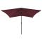 Parasol de jardin avec LED et mât en acier rouge bordeaux 2x3 mCe parasol de jardin est un choix parfait pour vous protéger contre les rayons UV et la pluie. Vous pouvez l'installer sur votre patio, terrasse ou dans votre jardin. Fabriqué en polyester anti-UV et anti-décoloration, le parasol d'extérieur peut vous offrir une protection optimale contre le soleil. Le mât et les baleines en acier enduit de poudre assurent également la stabilité. Grâce à la manivelle et à l'inclinaison, le parasol est pliable et portable. Il peut être monté sur votre support existant ou au milieu des tables si des trous sont disponibles. Les lumières LED intégrées, alimentées par le panneau solaire, créeront une ambiance chaleureuse et romantique la nuit. Ce produit ne convient pas aux intempéries telles que le vent fort, les chutes de neige et les conditions météorologiques extrêmes.