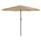 Caractéristiques techniques : Couleur : marron Matériaux : tissu (100 % polyester), acier enduit de poudre, paille Dimensions hors tout : 324 x 324 x 247 cm Diamètre du mât : 38 mm Comprend un dessus en paille à 8 couches Comprend 3 lumières DEL sur chaque nervure Assemblage requis : oui