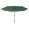 Parasol de jardin avec lumières LED et mât en métal 400 cm vertCe parasol de jardin tendance avec des lumières LED est une excellente solution pour créer de l'ombre et vous protéger des rayons UV nocifs. Ce parasol est fabriqué en polyester qui vous offre une protection optimale contre les coups de soleil. Le mât en métal fort, ainsi que les baleines rigides, maintiennent le parasol stable et robuste. Il dispose de 32 LED pour éclairer et créer une ambiance chaleureuse et romantique la nuit. En outre, il peut également être ouvert et fermé facilement grâce au mécanisme à manivelle. Tenir les enfants à l'écart de la zone d'assemblage pendant le montage. Manipulez les pièces lourdes avec précaution. Assurez-vous que ce produit est entièrement assemblé comme illustré avant de l'utiliser. Ce produit ne doit être utilisé que sur un sol ferme et plat. Veillez à ce que le produit soit toujours placé sur un sol plat. Aucune responsabilité ne sera acceptée en cas de dommages ou de blessures causés par une utilisation incorrecte de ce produit. Tenir les mains à l'écart du mécanisme de pliage et des pièces mobiles afin d'éviter tout risque de blessure. N'utilisez ni n'ouvrez jamais ce parasol sans qu'une base appropriée ne soit en place. N'utilisez pas ce parasol pendant les périodes de vent fort et de pluie. Le non-respect de cette consigne peut entraîner des blessures et/ou des dommages. Fermez toujours le parasol et mettez la housse si le vent dépasse une « brise modérée », s'il y a des chutes de neige ou s'il pleut. Le produit contient de petites pièces qui peuvent présenter un risque pour les jeunes enfants. Gardez les petites pièces hors de portée des enfants. Ce produit n'est pas un jouet ! Veillez à ce que les enfants n'utilisent pas le parasol, l'auvent ou la base pour jouer, grimper, jouer ou grimper. N'utilisez pas de feu ouvert (par exemple, barbecue ou grill) sous ou à côté de ce produit.