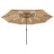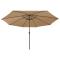 Parasol de jardin avec lumières LED et mât en métal 400cm taupeCe parasol de jardin tendance avec des lumières LED est une excellente solution pour créer de l'ombre et vous protéger des rayons UV nocifs. Ce parasol est fabriqué en polyester qui vous offre une protection optimale contre les coups de soleil. Le mât en métal fort, ainsi que les baleines rigides, maintiennent le parasol stable et robuste. Il dispose de 32 LED pour éclairer et créer une ambiance chaleureuse et romantique la nuit. En outre, il peut également être ouvert et fermé facilement grâce au mécanisme à manivelle. Tenir les enfants à l'écart de la zone d'assemblage pendant le montage. Manipulez les pièces lourdes avec précaution. Assurez-vous que ce produit est entièrement assemblé comme illustré avant de l'utiliser. Ce produit ne doit être utilisé que sur un sol ferme et plat. Veillez à ce que le produit soit toujours placé sur un sol plat. Aucune responsabilité ne sera acceptée en cas de dommages ou de blessures causés par une utilisation incorrecte de ce produit. Tenir les mains à l'écart du mécanisme de pliage et des pièces mobiles afin d'éviter tout risque de blessure. N'utilisez ni n'ouvrez jamais ce parasol sans qu'une base appropriée ne soit en place. N'utilisez pas ce parasol pendant les périodes de vent fort et de pluie. Le non-respect de cette consigne peut entraîner des blessures et/ou des dommages. Fermez toujours le parasol et mettez la housse si le vent dépasse une « brise modérée », s'il y a des chutes de neige ou s'il pleut. Le produit contient de petites pièces qui peuvent présenter un risque pour les jeunes enfants. Gardez les petites pièces hors de portée des enfants. Ce produit n'est pas un jouet ! Veillez à ce que les enfants n'utilisent pas le parasol, l'auvent ou la base pour jouer, grimper, jouer ou grimper. N'utilisez pas de feu ouvert (par exemple, barbecue ou grill) sous ou à côté de ce produit.