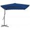 Parasol de jardin avec mât en acier bleu 250x250x230 cmCet élégant parasol de jardin est parfait pour créer de l'ombre et vous protéger des rayons UV nocifs. Fabriquée en polyester anti-UV et anti-décoloration, la couverture de parasol vous offre une protection optimale contre le soleil et est facile à nettoyer. Il comporte une base croisée robuste pour ajouter de la stabilité. Le mât et les 4 nervures durables en acier rendent le parasol très stable et durable. Ce parasol unique peut pivoter à 360 degrés, ce qui vous permet d'ajuster facilement l'angle de l'auvent pour suivre la direction du soleil. Veuillez noter que nous vous recommandons de traiter le tissu du parasol avec un spray imperméabilisant s'il est soumis à des fortes précipitations.