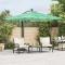 Parasol de jardin avec mât en acier vert 269x269x235 cmCe parasol de jardin est parfait pour créer de l'ombre et vous protéger des rayons UV nocifs du soleil. Protection contre le soleil et la pluie : fabriqué en polyester durable, ce parasol d'extérieur offre une protection contre le soleil et la pluie, créant ainsi un endroit idéal pour profiter de l'extérieur. Construction robuste : ce parasol de jardin est soutenu par un mât robuste et des nervures au sommet, garantissant que la couverture reste droite même les jours venteux. Mécanisme à manivelle : grâce au mécanisme de la manivelle, le parasol s'ouvre et se ferme facilement. Bon à savoir :Ce produit n'est pas un jouet ! Veillez à ce que les enfants n'utilisent pas le parasol, la toile ou la base pour jouer ou grimper. Ne pas utiliser de feu ouvert (par exemple, barbecue ou grill) sous ou à côté de ce produit. Ce produit n'est pas 100 % imperméable. Nous recommandons de traiter ce produit avec un spray imperméable pour une meilleure résistance à l'eau.