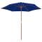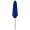 Parasol de jardin avec mât en bois bleu 270 cmCet élégant parasol de jardin en bois est parfait pour créer de l'ombre et vous protéger des rayons UV nocifs. Fabriquée en polyester anti-UV et anti-décoloration, la couverture de parasol vous offre une protection optimale contre le soleil et est facile à nettoyer. Avec un diamètre de mât de 38 mm, il pourrait être monté sur le support existant ou au milieu de tables percées. Le mât en bois fort, associé aux 6 nervures durables, rend le parasol d'extérieur très stable et durable. Le parasol de jardin peut être facilement ouvert et fermé grâce au système à une poulie. Veuillez noter que nous vous recommandons de traiter le tissu du parasol avec un spray imperméabilisant s'il est soumis à des fortes précipitations.