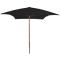 Parasol de jardin avec mât en bois noir 200x300 cmCet élégant parasol de jardin en bois est parfait pour créer de l'ombre et vous protéger des rayons UV nocifs. Fabriquée en polyester anti-UV et anti-décoloration, la couverture de parasol vous offre une protection optimale contre le soleil et est facile à nettoyer. Avec un diamètre de mât de 38 mm, il pourrait être monté sur le support existant ou au milieu de tables percées. Le mât en bois fort, associé aux 6 nervures durables, rend le parasol d'extérieur très stable et durable. Le parasol de jardin peut être facilement ouvert et fermé grâce au système à une poulie. Veuillez noter que nous vous recommandons de traiter le tissu du parasol avec un spray imperméabilisant s'il est soumis à des fortes précipitations.