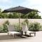 Parasol de jardin avec mât en bois noir 300x300x273 cmCe parasol de jardin est parfait pour créer de l'ombre et vous protéger des rayons UV nocifs du soleil. Matériau durable : fabriqué en polyester anti-UV et anti-décoloration, le parasol vous offre une protection optimale contre le soleil et est facile à nettoyer.Cadre stable : le mât en bois dur solide avec des nervures durables rend le parasol de jardin très stable et durable.Ventilation : le morceau de tissu supplémentaire au sommet du parasol permet au vent et à la chaleur de s'évacuer, ce qui fait de ce parasol un excellent choix pour la vie à l'extérieur.Facile à utiliser : le parasol d'extérieur s'ouvre et se ferme facilement grâce au système de double poulie. Remarque :Ce produit n'est pas 100 % imperméable. Nous recommandons de traiter ce produit avec un spray imperméable pour une meilleure résistance à l'eau.