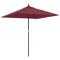 Parasol de jardin avec mât en bois rouge bordeaux 198x198x231cmCe parasol de jardin est parfait pour créer de l'ombre et vous protéger des rayons UV nocifs du soleil. Matériau durable : fabriqué en polyester anti-UV et anti-décoloration, le parasol vous offre une protection optimale contre le soleil et est facile à nettoyer. Cadre stable : le mât en bois dur solide avec des nervures durables rend le parasol de jardin très stable et durable. Ventilation : le morceau de tissu supplémentaire au sommet du parasol permet au vent et à la chaleur de s'évacuer, ce qui fait de ce parasol un excellent choix pour la vie à l'extérieur. Facile à utiliser : le parasol d'extérieur s'ouvre et se ferme facilement grâce au système de poulie unique. Remarque : Ce produit n'est pas 100 % imperméable. Nous recommandons de traiter ce produit avec un spray imperméable pour une meilleure résistance à l'eau. Il est important que tout produit assemblé à l'aide d'une vis, quelle qu'elle soit, soit resserré deux semaines après l'assemblage et une fois tous les trois mois, afin d'assurer la stabilité du produit pendant toute sa durée de vie. Ne serrez pas complètement chaque vis avant que toutes les vis soient correctement fixées. Tenir les enfants à l'écart de la zone d'assemblage pendant le montage. Manipulez les pièces lourdes avec précaution. Assurez-vous que ce produit est entièrement assemblé comme illustré avant de l'utiliser. Ce produit ne doit être utilisé que sur un sol ferme et plat. Veillez à ce que le produit soit toujours placé sur un sol plat. Aucune responsabilité ne sera acceptée en cas de dommages ou de blessures causés par une utilisation incorrecte de ce produit. Tenir les mains à l'écart du mécanisme de pliage et des pièces mobiles afin d'éviter tout risque de blessure. N'utilisez ni n'ouvrez jamais ce parasol sans qu'une base appropriée ne soit en place. N'utilisez pas ce parasol pendant les périodes de vent fort et de pluie. Le non-respect de cette consigne peut entraîner des blessures et/ou des dommages. Fermez toujours le parasol et mettez la housse si le vent dépasse une « brise modérée », s'il y a des chutes de neige ou s'il pleut. Le produit contient de petites pièces qui peuvent présenter un risque pour les jeunes enfants. Gardez les petites pièces hors de portée des enfants. Ce produit n'est pas un jouet ! Veillez à ce que les enfants n'utilisent pas le parasol, l'auvent ou la base pour jouer ou grimper. pour jouer ou grimper. N'utilisez pas de feu ouvert (par exemple, barbecue ou grill) sous ou à côté de ce produit.