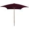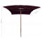 Parasol de jardin avec mât en bois rouge bordeaux 200x300 cmCet élégant parasol de jardin en bois est parfait pour créer de l'ombre et vous protéger des rayons UV nocifs. Fabriquée en polyester anti-UV et anti-décoloration, la couverture de parasol vous offre une protection optimale contre le soleil et est facile à nettoyer. Avec un diamètre de mât de 38 mm, il pourrait être monté sur le support existant ou au milieu de tables percées. Le mât en bois fort, associé aux 6 nervures durables, rend le parasol d'extérieur très stable et durable. Le parasol de jardin peut être facilement ouvert et fermé grâce au système à une poulie. Veuillez noter que nous vous recommandons de traiter le tissu du parasol avec un spray imperméabilisant s'il est soumis à des fortes précipitations.