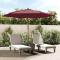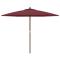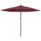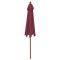 Parasol de jardin avec mât en bois rouge bordeaux 299x240 cmCe parasol de jardin est parfait pour créer de l'ombre et vous protéger des rayons UV nocifs du soleil. Matériau durable : fabriqué en polyester anti-UV et anti-décoloration, le parasol vous offre une protection optimale contre le soleil et est facile à nettoyer. Cadre stable : le mât en bois dur solide avec des nervures durables rend le parasol de jardin très stable et durable. Ventilation : le morceau de tissu supplémentaire au sommet du parasol permet au vent et à la chaleur de s'évacuer, ce qui fait de ce parasol un excellent choix pour la vie à l'extérieur. Facile à utiliser : le parasol d'extérieur s'ouvre et se ferme facilement grâce au système de poulie unique. Remarque : Ce produit n'est pas 100 % imperméable. Nous recommandons de traiter ce produit avec un spray imperméable pour une meilleure résistance à l'eau. Il est important que tout produit assemblé à l'aide d'une vis, quelle qu'elle soit, soit resserré deux semaines après l'assemblage et une fois tous les trois mois, afin d'assurer la stabilité du produit pendant toute sa durée de vie. Ne serrez pas complètement chaque vis avant que toutes les vis soient correctement fixées. Tenir les enfants à l'écart de la zone d'assemblage pendant le montage. Manipulez les pièces lourdes avec précaution. Assurez-vous que ce produit est entièrement assemblé comme illustré avant de l'utiliser. Ce produit ne doit être utilisé que sur un sol ferme et plat. Veillez à ce que le produit soit toujours placé sur un sol plat. Aucune responsabilité ne sera acceptée en cas de dommages ou de blessures causés par une utilisation incorrecte de ce produit. Tenir les mains à l'écart du mécanisme de pliage et des pièces mobiles afin d'éviter tout risque de blessure. N'utilisez ni n'ouvrez jamais ce parasol sans qu'une base appropriée ne soit en place. N'utilisez pas ce parasol pendant les périodes de vent fort et de pluie. Le non-respect de cette consigne peut entraîner des blessures et/ou des dommages. Fermez toujours le parasol et mettez la housse si le vent dépasse une « brise modérée », s'il y a des chutes de neige ou s'il pleut. Le produit contient de petites pièces qui peuvent présenter un risque pour les jeunes enfants. Gardez les petites pièces hors de portée des enfants. Ce produit n'est pas un jouet ! Veillez à ce que les enfants n'utilisent pas le parasol, l'auvent ou la base pour jouer ou grimper. N'utilisez pas de feu ouvert (par exemple, barbecue ou grill) sous ou à côté de ce produit.