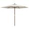 Parasol de jardin avec mât en bois sable 299x240 cmCe parasol de jardin est parfait pour créer de l'ombre et vous protéger des rayons UV nocifs du soleil. Matériau durable : fabriqué en polyester anti-UV et anti-décoloration, le parasol vous offre une protection optimale contre le soleil et est facile à nettoyer.Cadre stable : le mât en bois dur solide avec des nervures durables rend le parasol de jardin très stable et durable.Ventilation : le morceau de tissu supplémentaire au sommet du parasol permet au vent et à la chaleur de s'évacuer, ce qui fait de ce parasol un excellent choix pour la vie à l'extérieur.Facile à utiliser : le parasol d'extérieur s'ouvre et se ferme facilement grâce au système de poulie unique. Remarque :Ce produit n'est pas 100 % imperméable. Nous recommandons de traiter ce produit avec un spray imperméable pour une meilleure résistance à l'eau.