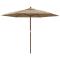 Parasol de jardin avec mât en bois taupe 299x240 cmCe parasol de jardin est parfait pour créer de l'ombre et vous protéger des rayons UV nocifs du soleil. Matériau durable : fabriqué en polyester anti-UV et anti-décoloration, le parasol vous offre une protection optimale contre le soleil et est facile à nettoyer.Cadre stable : le mât en bois dur solide avec des nervures durables rend le parasol de jardin très stable et durable.Ventilation : le morceau de tissu supplémentaire au sommet du parasol permet au vent et à la chaleur de s'évacuer, ce qui fait de ce parasol un excellent choix pour la vie à l'extérieur.Facile à utiliser : le parasol d'extérieur s'ouvre et se ferme facilement grâce au système de poulie unique. Remarque :Ce produit n'est pas 100 % imperméable. Nous recommandons de traiter ce produit avec un spray imperméable pour une meilleure résistance à l'eau.
