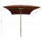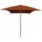 Parasol de jardin avec mât en bois terre cuite 200x300 cmCet élégant parasol de jardin en bois est parfait pour créer de l'ombre et vous protéger des rayons UV nocifs. Fabriquée en polyester anti-UV et anti-décoloration, la couverture de parasol vous offre une protection optimale contre le soleil et est facile à nettoyer. Avec un diamètre de mât de 38 mm, il pourrait être monté sur le support existant ou au milieu de tables percées. Le mât en bois fort, associé aux 6 nervures durables, rend le parasol d'extérieur très stable et durable. Le parasol de jardin peut être facilement ouvert et fermé grâce au système à une poulie. Veuillez noter que nous vous recommandons de traiter le tissu du parasol avec un spray imperméabilisant s'il est soumis à des fortes précipitations.