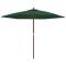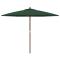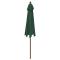 Parasol de jardin avec mât en bois vert 299x240 cmCe parasol de jardin est parfait pour créer de l'ombre et vous protéger des rayons UV nocifs du soleil. Matériau durable : fabriqué en polyester anti-UV et anti-décoloration, le parasol vous offre une protection optimale contre le soleil et est facile à nettoyer. Cadre stable : le mât en bois dur solide avec des nervures durables rend le parasol de jardin très stable et durable. Ventilation : le morceau de tissu supplémentaire au sommet du parasol permet au vent et à la chaleur de s'évacuer, ce qui fait de ce parasol un excellent choix pour la vie à l'extérieur. Facile à utiliser : le parasol d'extérieur s'ouvre et se ferme facilement grâce au système de poulie unique. Remarque : Ce produit n'est pas 100 % imperméable. Nous recommandons de traiter ce produit avec un spray imperméable pour une meilleure résistance à l'eau. Il est important que tout produit assemblé à l'aide d'une vis, quelle qu'elle soit, soit resserré deux semaines après l'assemblage et une fois tous les trois mois, afin d'assurer la stabilité du produit pendant toute sa durée de vie. Ne serrez pas complètement chaque vis avant que toutes les vis soient correctement fixées. Tenir les enfants à l'écart de la zone d'assemblage pendant le montage. Manipulez les pièces lourdes avec précaution. Assurez-vous que ce produit est entièrement assemblé comme illustré avant de l'utiliser. Ce produit ne doit être utilisé que sur un sol ferme et plat. Veillez à ce que le produit soit toujours placé sur un sol plat. Aucune responsabilité ne sera acceptée en cas de dommages ou de blessures causés par une utilisation incorrecte de ce produit. Tenir les mains à l'écart du mécanisme de pliage et des pièces mobiles afin d'éviter tout risque de blessure. N'utilisez ni n'ouvrez jamais ce parasol sans qu'une base appropriée ne soit en place. N'utilisez pas ce parasol pendant les périodes de vent fort et de pluie. Le non-respect de cette consigne peut entraîner des blessures et/ou des dommages. Fermez toujours le parasol et mettez la housse si le vent dépasse une « brise modérée », s'il y a des chutes de neige ou s'il pleut. Le produit contient de petites pièces qui peuvent présenter un risque pour les jeunes enfants. Gardez les petites pièces hors de portée des enfants. Ce produit n'est pas un jouet ! Veillez à ce que les enfants n'utilisent pas le parasol, l'auvent ou la base pour jouer ou grimper. pour jouer ou grimper. N'utilisez pas de feu ouvert (par exemple, barbecue ou grill) sous ou à côté de ce produit.