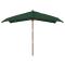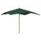 Parasol de jardin avec mât en bois vert 300x300x273 cmCe parasol de jardin est parfait pour créer de l'ombre et vous protéger des rayons UV nocifs du soleil. Matériau durable : fabriqué en polyester anti-UV et anti-décoloration, le parasol vous offre une protection optimale contre le soleil et est facile à nettoyer.Cadre stable : le mât en bois dur solide avec des nervures durables rend le parasol de jardin très stable et durable.Ventilation : le morceau de tissu supplémentaire au sommet du parasol permet au vent et à la chaleur de s'évacuer, ce qui fait de ce parasol un excellent choix pour la vie à l'extérieur.Facile à utiliser : le parasol d'extérieur s'ouvre et se ferme facilement grâce au système de double poulie. Remarque :Ce produit n'est pas 100 % imperméable. Nous recommandons de traiter ce produit avec un spray imperméable pour une meilleure résistance à l'eau.