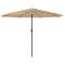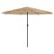 Caractéristiques techniques : Couleur : marron Matériaux : tissu (100 % polyester), acier enduit de poudre, paille Dimensions hors tout : 388 x 388 x 248 cm Diamètre du mât : 38 mm Comprend un dessus en paille à 8 couches Assemblage requis : oui