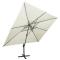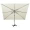 Caractéristiques techniques : Couleur : Sable Matériaux : Tissu avec revêtement PA, aluminium thermolaqué Dimensions hors tout : 400 x 300 x 274 cm Dimensions de la base transversale : 100 x 100 cm Dimensions du mât : 7 x 5 cm Avec système de ventilation et de manivelle Inclinable et rotatif à 360 degrés Comprend 8 baleines en aluminium Comprend un double plateau Assemblage requis : Oui