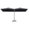 Parasol de jardin double avec mât en acier anthracite 600x300cmCe parasol de jardin double tendance est un excellent choix pour créer de l'ombre et vous protéger des rayons UV nocifs du soleil. Ce parasol est en polyester qui vous offre une protection optimale contre les coups de soleil. Le solide mât en acier, ainsi que les baleines rigides en acier, assurent la stabilité du parasol. Il dispose d'une base transversale en acier pour ajouter de la stabilité. La conception de deux plateaux côte à côte le rend pratique, élégant et unique, ce qui permet non seulement de créer plus d'espace ombragé, mais aussi d'attirer l'attention dans n'importe quel espace extérieur. De plus, il peut également être facilement ouvert et fermé. Tenir les enfants à l'écart de la zone d'assemblage pendant le montage. Manipulez les pièces lourdes avec précaution. Assurez-vous que ce produit est entièrement assemblé comme illustré avant de l'utiliser. Ce produit ne doit être utilisé que sur un sol ferme et plat. Veillez à ce que le produit soit toujours placé sur un sol plat. Aucune responsabilité ne sera acceptée en cas de dommages ou de blessures causés par une utilisation incorrecte de ce produit. Tenir les mains à l'écart du mécanisme de pliage et des pièces mobiles afin d'éviter tout risque de blessure. N'utilisez ni n'ouvrez jamais ce parasol sans qu'une base appropriée ne soit en place. N'utilisez pas ce parasol pendant les périodes de vent fort et de pluie. Le non-respect de cette consigne peut entraîner des blessures et/ou des dommages. Fermez toujours le parasol et mettez la housse si le vent dépasse une « brise modérée », s'il y a des chutes de neige ou s'il pleut. Le produit contient de petites pièces qui peuvent présenter un risque pour les jeunes enfants. Gardez les petites pièces hors de portée des enfants. Ce produit n'est pas un jouet ! Veillez à ce que les enfants n'utilisent pas le parasol, l'auvent ou la base pour jouer, grimper, jouer ou grimper. N'utilisez pas de feu ouvert (par exemple, barbecue ou grill) sous ou à côté de ce produit.