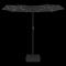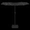 Parasol de jardin à double tête avec LED anthracite 316x240 cmCet élégant parasol de jardin à deux têtes avec LED est un choix parfait pour créer de l'ombre et vous protéger des rayons UV nocifs. Matériau durable : fabriqué en polyester anti-UV et anti-décoloration, le parasol de jardin vous offre une protection optimale contre le soleil et est facile à nettoyer.Cadre robuste : le solide mât en fer enduit de poudre, ainsi que les nervures durables, rendent le parasol de jardin très stable et robuste.Lumières LED brillantes : les lumières LED intégrées du parasol illuminent votre espace de vie extérieur et créent une ambiance chaleureuse et romantique lorsque le soleil se couche.Mécanisme à manivelle : grâce au mécanisme de la manivelle, le parasol s'ouvre et se ferme facilement.Base solide : la base avec le sac à sable assure la solidité et la stabilité du parasol, même en cas de vent fort ou de forte pluie. Il est important que tout produit assemblé à l'aide d'une vis, quelle qu'elle soit, soit resserré deux semaines après l'assemblage et une fois tous les trois mois, afin d'assurer la stabilité du produit pendant toute sa durée de vie. Ne serrez pas complètement chaque vis avant que toutes les vis soient correctement fixées. Tenir les enfants à l'écart de la zone d'assemblage pendant le montage. Manipulez les pièces lourdes avec précaution. Assurez-vous que ce produit est entièrement assemblé comme illustré avant de l'utiliser. Ce produit ne doit être utilisé que sur un sol ferme et plat. Veillez à ce que le produit soit toujours placé sur un sol plat. Aucune responsabilité ne sera acceptée en cas de dommages ou de blessures causés par une utilisation incorrecte de ce produit. Tenir les mains à l'écart du mécanisme de pliage et des pièces mobiles afin d'éviter tout risque de blessure. N'utilisez ni n'ouvrez jamais ce parasol sans qu'une base appropriée ne soit en place. N'utilisez pas ce parasol pendant les périodes de vent fort et de pluie. Le non-respect de cette consigne peut entraîner des blessures et/ou des dommages. Fermez toujours le parasol et mettez la housse si le vent dépasse une « brise modérée », s'il y a des chutes de neige ou s'il pleut. Le produit contient de petites pièces qui peuvent présenter un risque pour les jeunes enfants. Gardez les petites pièces hors de portée des enfants. Ce produit n'est pas un jouet ! Veillez à ce que les enfants n'utilisent pas le parasol, l'auvent ou la base pour jouer ou grimper. pour jouer ou grimper. N'utilisez pas de feu ouvert (par exemple, barbecue ou grill) sous ou à côté de ce produit. Si la vitesse du vent dépasse 6 m/s ou en cas de fortes pluies, retirez soigneusement le produit, pliez-le, sécurisez-le et mettez-le dans un endroit sûr. Si le tissu devient accidentellement mouillé, séchez-le immédiatement pour éviter un vieillissement prématuré du produit. Vérifiez avant utilisation que votre gazebo, tente, parasol ou pavillon n'est pas endommagé (éléments métalliques pliés, tissu déchiré). En cas de dommages, n'utilisez pas le produit. Le non-respect de ces consignes peut entraîner des dommages.