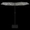 Parasol de jardin à double tête avec LED blanc sable 316x240 cmCet élégant parasol de jardin à deux têtes avec LED est un choix parfait pour créer de l'ombre et vous protéger des rayons UV nocifs. Matériau durable : fabriqué en polyester anti-UV et anti-décoloration, le parasol de jardin vous offre une protection optimale contre le soleil et est facile à nettoyer.Cadre robuste : le solide mât en fer enduit de poudre, ainsi que les nervures durables, rendent le parasol de jardin très stable et robuste.Lumières LED brillantes : les lumières LED intégrées du parasol illuminent votre espace de vie extérieur et créent une ambiance chaleureuse et romantique lorsque le soleil se couche.Mécanisme à manivelle : grâce au mécanisme de la manivelle, le parasol s'ouvre et se ferme facilement.Base solide : la base avec le sac à sable assure la solidité et la stabilité du parasol, même en cas de vent fort ou de forte pluie. Il est important que tout produit assemblé à l'aide d'une vis, quelle qu'elle soit, soit resserré deux semaines après l'assemblage et une fois tous les trois mois, afin d'assurer la stabilité du produit pendant toute sa durée de vie. Ne serrez pas complètement chaque vis avant que toutes les vis soient correctement fixées. Tenir les enfants à l'écart de la zone d'assemblage pendant le montage. Manipulez les pièces lourdes avec précaution. Assurez-vous que ce produit est entièrement assemblé comme illustré avant de l'utiliser. Ce produit ne doit être utilisé que sur un sol ferme et plat. Veillez à ce que le produit soit toujours placé sur un sol plat. Aucune responsabilité ne sera acceptée en cas de dommages ou de blessures causés par une utilisation incorrecte de ce produit. Tenir les mains à l'écart du mécanisme de pliage et des pièces mobiles afin d'éviter tout risque de blessure. N'utilisez ni n'ouvrez jamais ce parasol sans qu'une base appropriée ne soit en place. N'utilisez pas ce parasol pendant les périodes de vent fort et de pluie. Le non-respect de cette consigne peut entraîner des blessures et/ou des dommages. Fermez toujours le parasol et mettez la housse si le vent dépasse une « brise modérée », s'il y a des chutes de neige ou s'il pleut. Le produit contient de petites pièces qui peuvent présenter un risque pour les jeunes enfants. Gardez les petites pièces hors de portée des enfants. Ce produit n'est pas un jouet ! Veillez à ce que les enfants n'utilisent pas le parasol, l'auvent ou la base pour jouer ou grimper. pour jouer ou grimper. N'utilisez pas de feu ouvert (par exemple, barbecue ou grill) sous ou à côté de ce produit. Si la vitesse du vent dépasse 6 m/s ou en cas de fortes pluies, retirez soigneusement le produit, pliez-le, sécurisez-le et mettez-le dans un endroit sûr. Si le tissu devient accidentellement mouillé, séchez-le immédiatement pour éviter un vieillissement prématuré du produit. Vérifiez avant utilisation que votre gazebo, tente, parasol ou pavillon n'est pas endommagé (éléments métalliques pliés, tissu déchiré). En cas de dommages, n'utilisez pas le produit. Le non-respect de ces consignes peut entraîner des dommages.