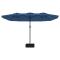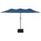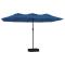 Parasol de jardin à double tête avec LED bleu azuré 449x245 cmCet élégant parasol de jardin à deux têtes avec LED est un choix parfait pour créer de l'ombre et vous protéger des rayons UV nocifs. Matériau durable : fabriqué en polyester anti-UV et anti-décoloration, le parasol de jardin vous offre une protection optimale contre le soleil et est facile à nettoyer.Cadre robuste : le solide mât en fer enduit de poudre, ainsi que les nervures durables, rendent le parasol de jardin très stable et robuste.Lumières LED brillantes : les lumières LED intégrées du parasol illuminent votre espace de vie extérieur et créent une ambiance chaleureuse et romantique lorsque le soleil se couche.Mécanisme à manivelle : grâce au mécanisme de la manivelle, le parasol s'ouvre et se ferme facilement.Base solide : la base avec le sac à sable assure la solidité et la stabilité du parasol, même en cas de vent fort ou de forte pluie. Il est important que tout produit assemblé à l'aide d'une vis, quelle qu'elle soit, soit resserré deux semaines après l'assemblage et une fois tous les trois mois, afin d'assurer la stabilité du produit pendant toute sa durée de vie. Ne serrez pas complètement chaque vis avant que toutes les vis soient correctement fixées. Tenir les enfants à l'écart de la zone d'assemblage pendant le montage. Manipulez les pièces lourdes avec précaution. Assurez-vous que ce produit est entièrement assemblé comme illustré avant de l'utiliser. Ce produit ne doit être utilisé que sur un sol ferme et plat. Veillez à ce que le produit soit toujours placé sur un sol plat. Aucune responsabilité ne sera acceptée en cas de dommages ou de blessures causés par une utilisation incorrecte de ce produit. Tenir les mains à l'écart du mécanisme de pliage et des pièces mobiles afin d'éviter tout risque de blessure. N'utilisez ni n'ouvrez jamais ce parasol sans qu'une base appropriée ne soit en place. N'utilisez pas ce parasol pendant les périodes de vent fort et de pluie. Le non-respect de cette consigne peut entraîner des blessures et/ou des dommages. Fermez toujours le parasol et mettez la housse si le vent dépasse une « brise modérée », s'il y a des chutes de neige ou s'il pleut. Le produit contient de petites pièces qui peuvent présenter un risque pour les jeunes enfants. Gardez les petites pièces hors de portée des enfants. Ce produit n'est pas un jouet ! Veillez à ce que les enfants n'utilisent pas le parasol, l'auvent ou la base pour jouer ou grimper. pour jouer ou grimper. N'utilisez pas de feu ouvert (par exemple, barbecue ou grill) sous ou à côté de ce produit. Si la vitesse du vent dépasse 6 m/s ou en cas de fortes pluies, retirez soigneusement le produit, pliez-le, sécurisez-le et mettez-le dans un endroit sûr. Si le tissu devient accidentellement mouillé, séchez-le immédiatement pour éviter un vieillissement prématuré du produit. Vérifiez avant utilisation que votre gazebo, tente, parasol ou pavillon n'est pas endommagé (éléments métalliques pliés, tissu déchiré). En cas de dommages, n'utilisez pas le produit. Le non-respect de ces consignes peut entraîner des dommages.