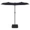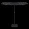 Parasol de jardin à double tête avec LED noir 316x240 cmCet élégant parasol de jardin à deux têtes avec LED est un choix parfait pour créer de l'ombre et vous protéger des rayons UV nocifs. Matériau durable : fabriqué en polyester anti-UV et anti-décoloration, le parasol de jardin vous offre une protection optimale contre le soleil et est facile à nettoyer.Cadre robuste : le solide mât en fer enduit de poudre, ainsi que les nervures durables, rendent le parasol de jardin très stable et robuste.Lumières LED brillantes : les lumières LED intégrées du parasol illuminent votre espace de vie extérieur et créent une ambiance chaleureuse et romantique lorsque le soleil se couche.Mécanisme à manivelle : grâce au mécanisme de la manivelle, le parasol s'ouvre et se ferme facilement.Base solide : la base avec le sac à sable assure la solidité et la stabilité du parasol, même en cas de vent fort ou de forte pluie. Il est important que tout produit assemblé à l'aide d'une vis, quelle qu'elle soit, soit resserré deux semaines après l'assemblage et une fois tous les trois mois, afin d'assurer la stabilité du produit pendant toute sa durée de vie. Ne serrez pas complètement chaque vis avant que toutes les vis soient correctement fixées. Tenir les enfants à l'écart de la zone d'assemblage pendant le montage. Manipulez les pièces lourdes avec précaution. Assurez-vous que ce produit est entièrement assemblé comme illustré avant de l'utiliser. Ce produit ne doit être utilisé que sur un sol ferme et plat. Veillez à ce que le produit soit toujours placé sur un sol plat. Aucune responsabilité ne sera acceptée en cas de dommages ou de blessures causés par une utilisation incorrecte de ce produit. Tenir les mains à l'écart du mécanisme de pliage et des pièces mobiles afin d'éviter tout risque de blessure. N'utilisez ni n'ouvrez jamais ce parasol sans qu'une base appropriée ne soit en place. N'utilisez pas ce parasol pendant les périodes de vent fort et de pluie. Le non-respect de cette consigne peut entraîner des blessures et/ou des dommages. Fermez toujours le parasol et mettez la housse si le vent dépasse une « brise modérée », s'il y a des chutes de neige ou s'il pleut. Le produit contient de petites pièces qui peuvent présenter un risque pour les jeunes enfants. Gardez les petites pièces hors de portée des enfants. Ce produit n'est pas un jouet ! Veillez à ce que les enfants n'utilisent pas le parasol, l'auvent ou la base pour jouer ou grimper. pour jouer ou grimper. N'utilisez pas de feu ouvert (par exemple, barbecue ou grill) sous ou à côté de ce produit. Si la vitesse du vent dépasse 6 m/s ou en cas de fortes pluies, retirez soigneusement le produit, pliez-le, sécurisez-le et mettez-le dans un endroit sûr. Si le tissu devient accidentellement mouillé, séchez-le immédiatement pour éviter un vieillissement prématuré du produit. Vérifiez avant utilisation que votre gazebo, tente, parasol ou pavillon n'est pas endommagé (éléments métalliques pliés, tissu déchiré). En cas de dommages, n'utilisez pas le produit. Le non-respect de ces consignes peut entraîner des dommages.