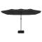 Parasol de jardin à double tête avec LED noir 449x265 cmCet élégant parasol de jardin à deux têtes avec LED est un choix parfait pour créer de l'ombre et vous protéger des rayons UV nocifs. Matériau durable : fabriqué en polyester anti-UV et anti-décoloration, le parasol de jardin vous offre une protection optimale contre le soleil et est facile à nettoyer. Cadre robuste : le solide mât en fer enduit de poudre, ainsi que les nervures durables, rendent le parasol de jardin très stable et robuste. Lumières LED brillantes : les lumières LED intégrées du parasol illuminent votre espace de vie extérieur et créent une ambiance chaleureuse et romantique lorsque le soleil se couche. Mécanisme à manivelle : grâce au mécanisme de la manivelle, le parasol s'ouvre et se ferme facilement. Base solide : la base avec le sac à sable assure la solidité et la stabilité du parasol, même en cas de vent fort ou de forte pluie. Il est important que tout produit assemblé à l'aide d'une vis, quelle qu'elle soit, soit resserré deux semaines après l'assemblage et une fois tous les trois mois, afin d'assurer la stabilité du produit pendant toute sa durée de vie. Ne serrez pas complètement chaque vis avant que toutes les vis soient correctement fixées. Tenir les enfants à l'écart de la zone d'assemblage pendant le montage. Manipulez les pièces lourdes avec précaution. Assurez-vous que ce produit est entièrement assemblé comme illustré avant de l'utiliser. Ce produit ne doit être utilisé que sur un sol ferme et plat. Veillez à ce que le produit soit toujours placé sur un sol plat. Aucune responsabilité ne sera acceptée en cas de dommages ou de blessures causés par une utilisation incorrecte de ce produit. Tenir les mains à l'écart du mécanisme de pliage et des pièces mobiles afin d'éviter tout risque de blessure. N'utilisez ni n'ouvrez jamais ce parasol sans qu'une base appropriée ne soit en place. N'utilisez pas ce parasol pendant les périodes de vent fort et de pluie. Le non-respect de cette consigne peut entraîner des blessures et/ou des dommages. Fermez toujours le parasol et mettez la housse si le vent dépasse une « brise modérée », s'il y a des chutes de neige ou s'il pleut. Le produit contient de petites pièces qui peuvent présenter un risque pour les jeunes enfants. Gardez les petites pièces hors de portée des enfants. Ce produit n'est pas un jouet ! Veillez à ce que les enfants n'utilisent pas le parasol, l'auvent ou la base pour jouer ou grimper. pour jouer ou grimper. N'utilisez pas de feu ouvert (par exemple, barbecue ou grill) sous ou à côté de ce produit. Si la vitesse du vent dépasse 6 m/s ou en cas de fortes pluies, retirez soigneusement le produit, pliez-le, sécurisez-le et mettez-le dans un endroit sûr. Si le tissu devient accidentellement mouillé, séchez-le immédiatement pour éviter un vieillissement prématuré du produit. Vérifiez avant utilisation que votre gazebo, tente, parasol ou pavillon n'est pas endommagé (éléments métalliques pliés, tissu déchiré). En cas de dommages, n'utilisez pas le produit. Le non-respect de ces consignes peut entraîner des dommages.