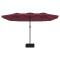 Parasol de jardin à double tête avec LED rouge bordeauxCet élégant parasol de jardin à deux têtes avec LED est un choix parfait pour créer de l'ombre et vous protéger des rayons UV nocifs. Matériau durable : fabriqué en polyester anti-UV et anti-décoloration, le parasol de jardin vous offre une protection optimale contre le soleil et est facile à nettoyer.Cadre robuste : le solide mât en fer enduit de poudre, ainsi que les nervures durables, rendent le parasol de jardin très stable et robuste.Lumières LED brillantes : les lumières LED intégrées du parasol illuminent votre espace de vie extérieur et créent une ambiance chaleureuse et romantique lorsque le soleil se couche.Mécanisme à manivelle : grâce au mécanisme de la manivelle, le parasol s'ouvre et se ferme facilement.Base solide : la base avec le sac à sable assure la solidité et la stabilité du parasol, même en cas de vent fort ou de forte pluie. Il est important que tout produit assemblé à l'aide d'une vis, quelle qu'elle soit, soit resserré deux semaines après l'assemblage et une fois tous les trois mois, afin d'assurer la stabilité du produit pendant toute sa durée de vie. Ne serrez pas complètement chaque vis avant que toutes les vis soient correctement fixées. Tenir les enfants à l'écart de la zone d'assemblage pendant le montage. Manipulez les pièces lourdes avec précaution. Assurez-vous que ce produit est entièrement assemblé comme illustré avant de l'utiliser. Ce produit ne doit être utilisé que sur un sol ferme et plat. Veillez à ce que le produit soit toujours placé sur un sol plat. Aucune responsabilité ne sera acceptée en cas de dommages ou de blessures causés par une utilisation incorrecte de ce produit. Tenir les mains à l'écart du mécanisme de pliage et des pièces mobiles afin d'éviter tout risque de blessure. N'utilisez ni n'ouvrez jamais ce parasol sans qu'une base appropriée ne soit en place. N'utilisez pas ce parasol pendant les périodes de vent fort et de pluie. Le non-respect de cette consigne peut entraîner des blessures et/ou des dommages. Fermez toujours le parasol et mettez la housse si le vent dépasse une « brise modérée », s'il y a des chutes de neige ou s'il pleut. Le produit contient de petites pièces qui peuvent présenter un risque pour les jeunes enfants. Gardez les petites pièces hors de portée des enfants. Ce produit n'est pas un jouet ! Veillez à ce que les enfants n'utilisent pas le parasol, l'auvent ou la base pour jouer ou grimper. pour jouer ou grimper. N'utilisez pas de feu ouvert (par exemple, barbecue ou grill) sous ou à côté de ce produit. Si la vitesse du vent dépasse 6 m/s ou en cas de fortes pluies, retirez soigneusement le produit, pliez-le, sécurisez-le et mettez-le dans un endroit sûr. Si le tissu devient accidentellement mouillé, séchez-le immédiatement pour éviter un vieillissement prématuré du produit. Vérifiez avant utilisation que votre gazebo, tente, parasol ou pavillon n'est pas endommagé (éléments métalliques pliés, tissu déchiré). En cas de dommages, n'utilisez pas le produit. Le non-respect de ces consignes peut entraîner des dommages.