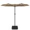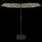 Parasol de jardin à double tête avec LED taupe 316x240 cmCet élégant parasol de jardin à deux têtes avec LED est un choix parfait pour créer de l'ombre et vous protéger des rayons UV nocifs. Matériau durable : fabriqué en polyester anti-UV et anti-décoloration, le parasol de jardin vous offre une protection optimale contre le soleil et est facile à nettoyer.Cadre robuste : le solide mât en fer enduit de poudre, ainsi que les nervures durables, rendent le parasol de jardin très stable et robuste.Lumières LED brillantes : les lumières LED intégrées du parasol illuminent votre espace de vie extérieur et créent une ambiance chaleureuse et romantique lorsque le soleil se couche.Mécanisme à manivelle : grâce au mécanisme de la manivelle, le parasol s'ouvre et se ferme facilement.Base solide : la base avec le sac à sable assure la solidité et la stabilité du parasol, même en cas de vent fort ou de forte pluie. Il est important que tout produit assemblé à l'aide d'une vis, quelle qu'elle soit, soit resserré deux semaines après l'assemblage et une fois tous les trois mois, afin d'assurer la stabilité du produit pendant toute sa durée de vie. Ne serrez pas complètement chaque vis avant que toutes les vis soient correctement fixées. Tenir les enfants à l'écart de la zone d'assemblage pendant le montage. Manipulez les pièces lourdes avec précaution. Assurez-vous que ce produit est entièrement assemblé comme illustré avant de l'utiliser. Ce produit ne doit être utilisé que sur un sol ferme et plat. Veillez à ce que le produit soit toujours placé sur un sol plat. Aucune responsabilité ne sera acceptée en cas de dommages ou de blessures causés par une utilisation incorrecte de ce produit. Tenir les mains à l'écart du mécanisme de pliage et des pièces mobiles afin d'éviter tout risque de blessure. N'utilisez ni n'ouvrez jamais ce parasol sans qu'une base appropriée ne soit en place. N'utilisez pas ce parasol pendant les périodes de vent fort et de pluie. Le non-respect de cette consigne peut entraîner des blessures et/ou des dommages. Fermez toujours le parasol et mettez la housse si le vent dépasse une « brise modérée », s'il y a des chutes de neige ou s'il pleut. Le produit contient de petites pièces qui peuvent présenter un risque pour les jeunes enfants. Gardez les petites pièces hors de portée des enfants. Ce produit n'est pas un jouet ! Veillez à ce que les enfants n'utilisent pas le parasol, l'auvent ou la base pour jouer ou grimper. pour jouer ou grimper. N'utilisez pas de feu ouvert (par exemple, barbecue ou grill) sous ou à côté de ce produit. Si la vitesse du vent dépasse 6 m/s ou en cas de fortes pluies, retirez soigneusement le produit, pliez-le, sécurisez-le et mettez-le dans un endroit sûr. Si le tissu devient accidentellement mouillé, séchez-le immédiatement pour éviter un vieillissement prématuré du produit. Vérifiez avant utilisation que votre gazebo, tente, parasol ou pavillon n'est pas endommagé (éléments métalliques pliés, tissu déchiré). En cas de dommages, n'utilisez pas le produit. Le non-respect de ces consignes peut entraîner des dommages.