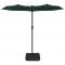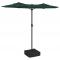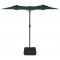 Parasol de jardin à double tête avec LED vert 316x240 cmCet élégant parasol de jardin à deux têtes avec LED est un choix parfait pour créer de l'ombre et vous protéger des rayons UV nocifs. Matériau durable : fabriqué en polyester anti-UV et anti-décoloration, le parasol de jardin vous offre une protection optimale contre le soleil et est facile à nettoyer.Cadre robuste : le solide mât en fer enduit de poudre, ainsi que les nervures durables, rendent le parasol de jardin très stable et robuste.Lumières LED brillantes : les lumières LED intégrées du parasol illuminent votre espace de vie extérieur et créent une ambiance chaleureuse et romantique lorsque le soleil se couche.Mécanisme à manivelle : grâce au mécanisme de la manivelle, le parasol s'ouvre et se ferme facilement.Base solide : la base avec le sac à sable assure la solidité et la stabilité du parasol, même en cas de vent fort ou de forte pluie. Il est important que tout produit assemblé à l'aide d'une vis, quelle qu'elle soit, soit resserré deux semaines après l'assemblage et une fois tous les trois mois, afin d'assurer la stabilité du produit pendant toute sa durée de vie. Ne serrez pas complètement chaque vis avant que toutes les vis soient correctement fixées. Tenir les enfants à l'écart de la zone d'assemblage pendant le montage. Manipulez les pièces lourdes avec précaution. Assurez-vous que ce produit est entièrement assemblé comme illustré avant de l'utiliser. Ce produit ne doit être utilisé que sur un sol ferme et plat. Veillez à ce que le produit soit toujours placé sur un sol plat. Aucune responsabilité ne sera acceptée en cas de dommages ou de blessures causés par une utilisation incorrecte de ce produit. Tenir les mains à l'écart du mécanisme de pliage et des pièces mobiles afin d'éviter tout risque de blessure. N'utilisez ni n'ouvrez jamais ce parasol sans qu'une base appropriée ne soit en place. N'utilisez pas ce parasol pendant les périodes de vent fort et de pluie. Le non-respect de cette consigne peut entraîner des blessures et/ou des dommages. Fermez toujours le parasol et mettez la housse si le vent dépasse une « brise modérée », s'il y a des chutes de neige ou s'il pleut. Le produit contient de petites pièces qui peuvent présenter un risque pour les jeunes enfants. Gardez les petites pièces hors de portée des enfants. Ce produit n'est pas un jouet ! Veillez à ce que les enfants n'utilisent pas le parasol, l'auvent ou la base pour jouer ou grimper. pour jouer ou grimper. N'utilisez pas de feu ouvert (par exemple, barbecue ou grill) sous ou à côté de ce produit. Si la vitesse du vent dépasse 6 m/s ou en cas de fortes pluies, retirez soigneusement le produit, pliez-le, sécurisez-le et mettez-le dans un endroit sûr. Si le tissu devient accidentellement mouillé, séchez-le immédiatement pour éviter un vieillissement prématuré du produit. Vérifiez avant utilisation que votre gazebo, tente, parasol ou pavillon n'est pas endommagé (éléments métalliques pliés, tissu déchiré). En cas de dommages, n'utilisez pas le produit. Le non-respect de ces consignes peut entraîner des dommages.