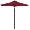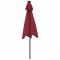 Caractéristiques techniques : Couleur : rouge bordeaux Matériaux : tissu (100 % polyester), acier Dimensions hors tout : 225 x 225 x 212 cm Diamètre du mât : 38 mm Avec système à manivelle Fonction d'inclinaison Comprend 3 lumières DEL sur chaque nervure Assemblage requis : oui