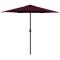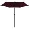 Parasol de jardin et mât en aluminium 270x246 cm rouge bordeauxCe parasol d'extérieur est parfait pour créer de l'ombre et vous protéger des rayons UV nocifs. Fabriquée en polyester anti-UV et anti-décoloration, la couverture de parasol vous offre une protection optimale contre le soleil et est facile à nettoyer. Le poteau en aluminium et les 6 robustes nervures en acier, rendent le parasol très stable et durable. Le parasol de jardin peut être ouvert et fermé facilement grâce au mécanisme à manivelle. L'article est facile à assembler. Veuillez noter que nous vous recommandons de traiter le tissu du parasol avec un spray imperméabilisant s'il est soumis à des fortes précipitations.