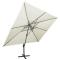 Parasol de jardin en porte-à-faux avec double toit sableCe parasol de jardin en porte-à-faux est parfait pour créer de l'ombre et vous protéger des rayons UV nocifs du soleil. Fabriquée en polyester anti-UV et anti-décoloration, la toile du parasol vous offre une protection optimale contre le soleil et est facile à nettoyer. Elle est dotée d'une solide base en croix pour plus de stabilité. Le design exclusif de ce parasol vous permet de l'incliner et de le faire pivoter à 360 degrés pour bloquer le soleil. Le solide mât en aluminium et les 8 baleines rendent le parasol très stable et durable. Ce parasol de jardin peut être facilement ouvert et fermé grâce au mécanisme à manivelle. De plus, le double toit facilite la ventilation. Veuillez noter que nous vous recommandons de traiter le tissu du parasol avec un spray imperméabilisant s'il est soumis à des fortes précipitations. Il est important que tout produit assemblé à l'aide d'une vis, quelle qu'elle soit, soit resserré deux semaines après l'assemblage et une fois tous les trois mois, afin d'assurer la stabilité du produit pendant toute sa durée de vie. Ne serrez pas complètement chaque vis avant que toutes les vis soient correctement fixées. Tenir les enfants à l'écart de la zone d'assemblage pendant le montage. Manipulez les pièces lourdes avec précaution. Ce produit ne doit être utilisé que sur un sol ferme et plat. Ce produit est destiné à un usage domestique uniquement Tenir les mains à l'écart du mécanisme de pliage et des pièces mobiles afin d'éviter tout risque de blessure. N'utilisez ni n'ouvrez jamais ce parasol sans qu'une base appropriée ne soit en place. N'utilisez pas ce parasol pendant les périodes de vent fort et de pluie. Le non-respect de cette consigne peut entraîner des blessures et/ou des dommages. Fermez toujours le parasol et mettez la housse si le vent dépasse une « brise modérée », s'il y a des chutes de neige ou s'il pleut. Le produit contient de petites pièces qui peuvent présenter un risque pour les jeunes enfants. Gardez les petites pièces hors de portée des enfants. Ce produit n'est pas un jouet ! Veillez à ce que les enfants n'utilisent pas le parasol, l'auvent ou la base pour jouer ou grimper. N'utilisez pas de feu ouvert (par exemple, barbecue ou grill) sous ou à côté de ce produit.