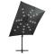 Parasol de jardin en porte-à-faux avec mât et lumières LEDCet élégant parasol avec lumières LED est un excellent choix pour créer un peu d'ombre et de protection contre les rayons UV nocifs du soleil. Lorsque le soleil se couche, les LED illumineront votre espace de vie extérieur. La housse de parasol, en polyester anti-UV et anti-décoloration, vous offre une protection optimale contre le soleil et est facile à nettoyer. Le parasol est doté d'une base transversale solide pour plus de stabilité. La conception exclusive du parasol de jardin vous permet de l'incliner et de le faire pivoter à 360 degrés pour bloquer le soleil de n'importe quel angle. Le solide mât en aluminium, ainsi que les 8 nervures durables, rendent le parasol très stable. Ce parasol de jardin peut être facilement ouvert et fermé grâce au mécanisme à manivelle. De plus, ce parasol de patio dispose de 24 LED pour illuminer votre espace de vie extérieur et créer une ambiance confortable et romantique lorsque le soleil se couche. Veuillez noter que nous vous recommandons de traiter le tissu du parasol avec un spray imperméabilisant s'il est soumis à des fortes précipitations. Il est important que tout produit assemblé à l'aide d'une vis, quelle qu'elle soit, soit resserré deux semaines après l'assemblage et une fois tous les trois mois, afin d'assurer la stabilité du produit pendant toute sa durée de vie. Ne serrez pas complètement chaque vis avant que toutes les vis soient correctement fixées. Tenir les enfants à l'écart de la zone d'assemblage pendant le montage. Manipulez les pièces lourdes avec précaution. Assurez-vous que ce produit est entièrement assemblé comme illustré avant de l'utiliser. Ce produit ne doit être utilisé que sur un sol ferme et plat. Veillez à ce que le produit soit toujours placé sur un sol plat. Aucune responsabilité ne sera acceptée en cas de dommages ou de blessures causés par une utilisation incorrecte de ce produit. Tenir les mains à l'écart du mécanisme de pliage et des pièces mobiles afin d'éviter tout risque de blessure. N'utilisez ni n'ouvrez jamais ce parasol sans qu'une base appropriée ne soit en place. N'utilisez pas ce parasol pendant les périodes de vent fort et de pluie. Le non-respect de cette consigne peut entraîner des blessures et/ou des dommages. Fermez toujours le parasol et mettez la housse si le vent dépasse une « brise modérée », s'il y a des chutes de neige ou s'il pleut. Le produit contient de petites pièces qui peuvent présenter un risque pour les jeunes enfants. Gardez les petites pièces hors de portée des enfants. Ce produit n'est pas un jouet ! Veillez à ce que les enfants n'utilisent pas le parasol, l'auvent ou la base pour jouer ou grimper. pour jouer ou grimper. N'utilisez pas de feu ouvert (par exemple, barbecue ou grill) sous ou à côté de ce produit. Si la vitesse du vent dépasse 6 m/s ou en cas de fortes pluies, retirez soigneusement le produit, pliez-le, sécurisez-le et mettez-le dans un endroit sûr. Si le tissu devient accidentellement mouillé, séchez-le immédiatement pour éviter un vieillissement prématuré du produit. Vérifiez avant utilisation que votre gazebo, tente, parasol ou pavillon n'est pas endommagé (éléments métalliques pliés, tissu déchiré). En cas de dommages, n'utilisez pas le produit. Le non-respect de ces consignes peut entraîner des dommages.