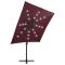 Parasol de jardin en porte-à-faux avec mât et lumières LEDCet élégant parasol avec lumières LED est un excellent choix pour créer un peu d'ombre et de protection contre les rayons UV nocifs du soleil. Lorsque le soleil se couche, les LED illumineront votre espace de vie extérieur. La housse de parasol, en polyester anti-UV et anti-décoloration, vous offre une protection optimale contre le soleil et est facile à nettoyer. Le parasol est doté d'une base transversale solide pour plus de stabilité. La conception exclusive du parasol de jardin vous permet de l'incliner et de le faire pivoter à 360 degrés pour bloquer le soleil de n'importe quel angle. Le solide mât en aluminium, ainsi que les 8 nervures durables, rendent le parasol très stable. Ce parasol de jardin peut être facilement ouvert et fermé grâce au mécanisme à manivelle. De plus, ce parasol de patio dispose de 24 LED pour illuminer votre espace de vie extérieur et créer une ambiance confortable et romantique lorsque le soleil se couche. Veuillez noter que nous vous recommandons de traiter le tissu du parasol avec un spray imperméabilisant s'il est soumis à des fortes précipitations. Il est important que tout produit assemblé à l'aide d'une vis, quelle qu'elle soit, soit resserré deux semaines après l'assemblage et une fois tous les trois mois, afin d'assurer la stabilité du produit pendant toute sa durée de vie. Ne serrez pas complètement chaque vis avant que toutes les vis soient correctement fixées. Tenir les enfants à l'écart de la zone d'assemblage pendant le montage. Manipulez les pièces lourdes avec précaution. Assurez-vous que ce produit est entièrement assemblé comme illustré avant de l'utiliser. Ce produit ne doit être utilisé que sur un sol ferme et plat. Veillez à ce que le produit soit toujours placé sur un sol plat. Aucune responsabilité ne sera acceptée en cas de dommages ou de blessures causés par une utilisation incorrecte de ce produit. Tenir les mains à l'écart du mécanisme de pliage et des pièces mobiles afin d'éviter tout risque de blessure. N'utilisez ni n'ouvrez jamais ce parasol sans qu'une base appropriée ne soit en place. N'utilisez pas ce parasol pendant les périodes de vent fort et de pluie. Le non-respect de cette consigne peut entraîner des blessures et/ou des dommages. Fermez toujours le parasol et mettez la housse si le vent dépasse une « brise modérée », s'il y a des chutes de neige ou s'il pleut. Le produit contient de petites pièces qui peuvent présenter un risque pour les jeunes enfants. Gardez les petites pièces hors de portée des enfants. Ce produit n'est pas un jouet ! Veillez à ce que les enfants n'utilisent pas le parasol, l'auvent ou la base pour jouer ou grimper. pour jouer ou grimper. N'utilisez pas de feu ouvert (par exemple, barbecue ou grill) sous ou à côté de ce produit. Si la vitesse du vent dépasse 6 m/s ou en cas de fortes pluies, retirez soigneusement le produit, pliez-le, sécurisez-le et mettez-le dans un endroit sûr. Si le tissu devient accidentellement mouillé, séchez-le immédiatement pour éviter un vieillissement prématuré du produit. Vérifiez avant utilisation que votre gazebo, tente, parasol ou pavillon n'est pas endommagé (éléments métalliques pliés, tissu déchiré). En cas de dommages, n'utilisez pas le produit. Le non-respect de ces consignes peut entraîner des dommages.