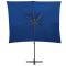Parasol de jardin en porte-à-faux à double toit bleu azuréCe parasol de jardin en porte-à-faux est parfait pour créer de l'ombre et vous protéger des rayons UV nocifs du soleil. Fabriquée en polyester anti-UV et anti-décoloration, la toile du parasol vous offre une protection optimale contre le soleil et est facile à nettoyer. Elle est dotée d'une solide base en croix pour plus de stabilité. Le design exclusif de ce parasol vous permet de l'incliner et de le faire pivoter à 360 degrés pour bloquer le soleil. Le solide mât en aluminium et les 8 baleines rendent le parasol très stable et durable. Ce parasol de jardin peut être facilement ouvert et fermé grâce au mécanisme à manivelle. De plus, le double toit facilite la ventilation. Veuillez noter que nous vous recommandons de traiter le tissu du parasol avec un spray imperméabilisant s'il est soumis à des fortes précipitations.